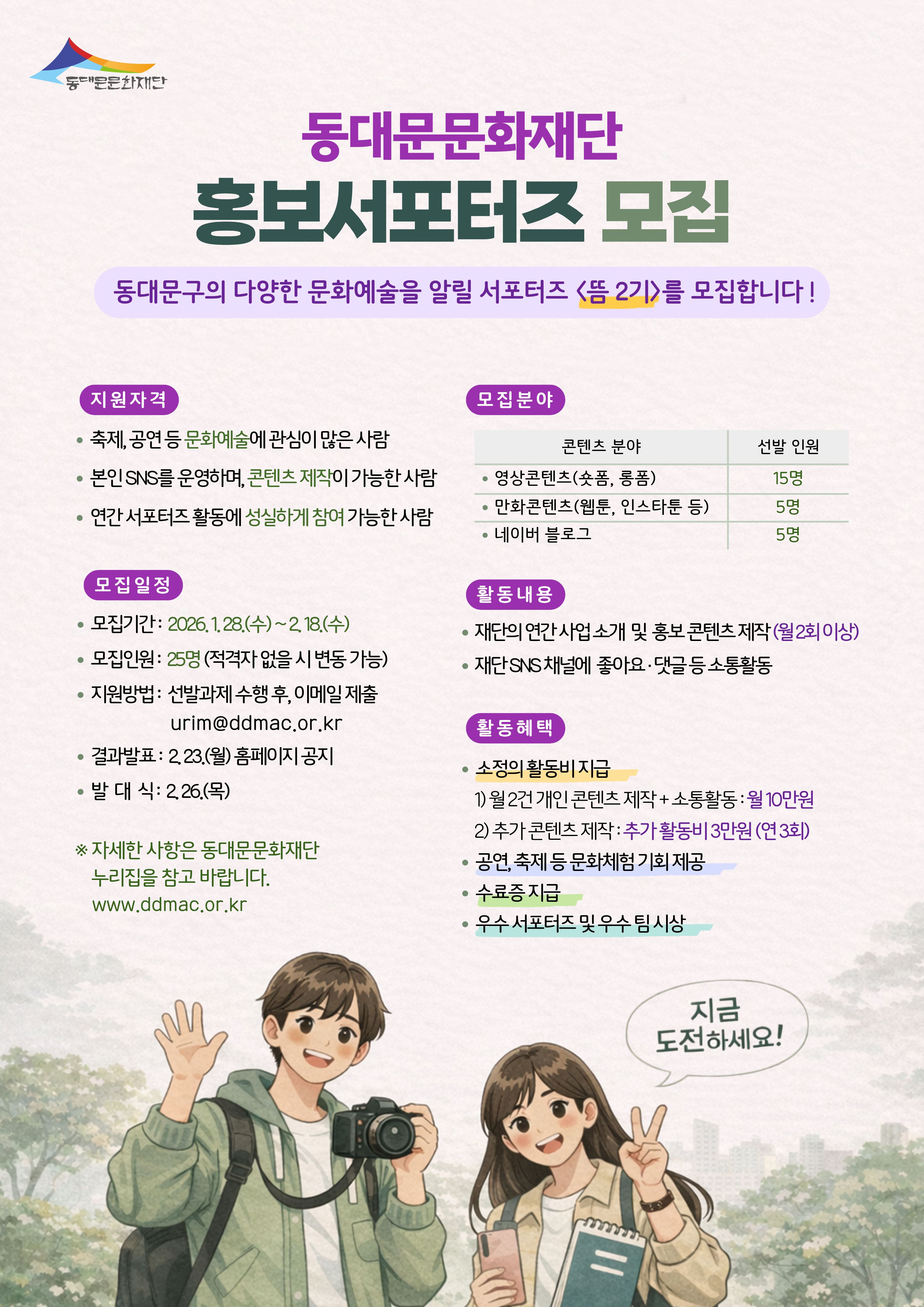 | 제목 | 2026년 동대문문화재단 홍보 서포터즈 <뜸 2기> 모집 |